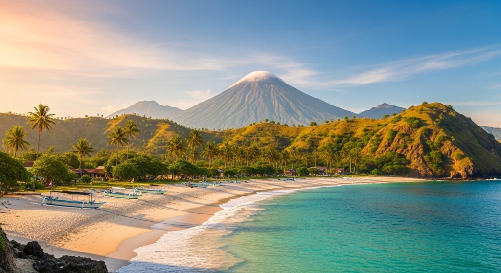 Lombok is a peaceful Indonesian island known for its quiet beaches, clear waters, and the…