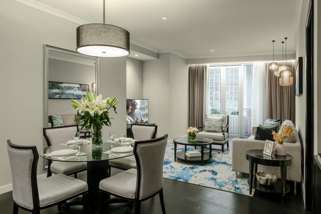 Our elegantly furnished one, two, and three-bedroom residences are designed for both short and extended stays. Each residence features a modern, fully-equipped kitchen, a separate living room perfect for entertaining or relaxing, a work area, and often a private balcony with breathtaking city views.