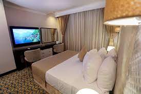 The hotel offers a variety of room types: Standard Room, Deluxe Room, Superior Room, Junior Suite, Silver Suite, Golden Suite, and Presidential Apartment.
